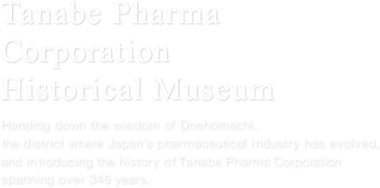 HOME Tanabe Pharma Corporation Historical Museum Handing down the wisdom of Doshomachi district where Japan's pharmaceutical industry has evolved, and introducing the history of Tanabe Pharma Corporation Historical Museum spanning over 340 years.