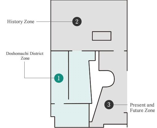 Tanabe Pharma Corporation Historical Museum is divided into three zones: Doshomachi District Zone, showcasing the company’s history and culture and histories of the area where Japanese pharmaceutical business originated; the History Zone, featuring a variety of materials and items collected over three centuries; and the Present and Future Zone, focusing on the company's current and future-progressive efforts toward pharmaceutical discovery, post-marketing development , and delivery on an international stage.