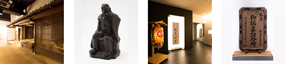 Visitors will see the signboard at the time of founding and the lantern placed under the eaves. In a storefront that reproduces the Tanabeya store in the Meiji period, a video of Tanabe Gohei the 12th introduces the company's roots and the history of Doshomachi.