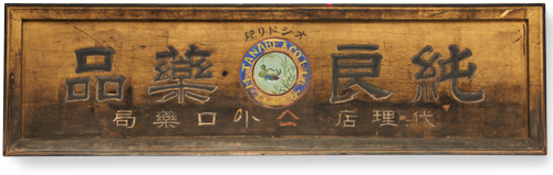 This is the signboard of the Tanabe Motosaburo Shoten distributor, and it features the "rooster" mark.