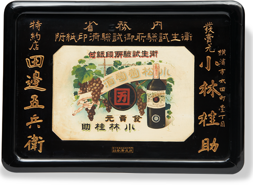 This signboard was displayed in retail stores to indicate distributorship of medicinal wine. It shows that Tanabe Seiyaku marketed medicinal wine (not the same as present-day wine) at the time.